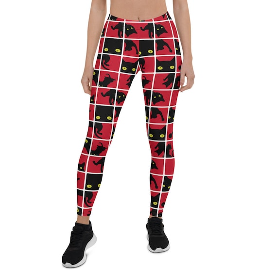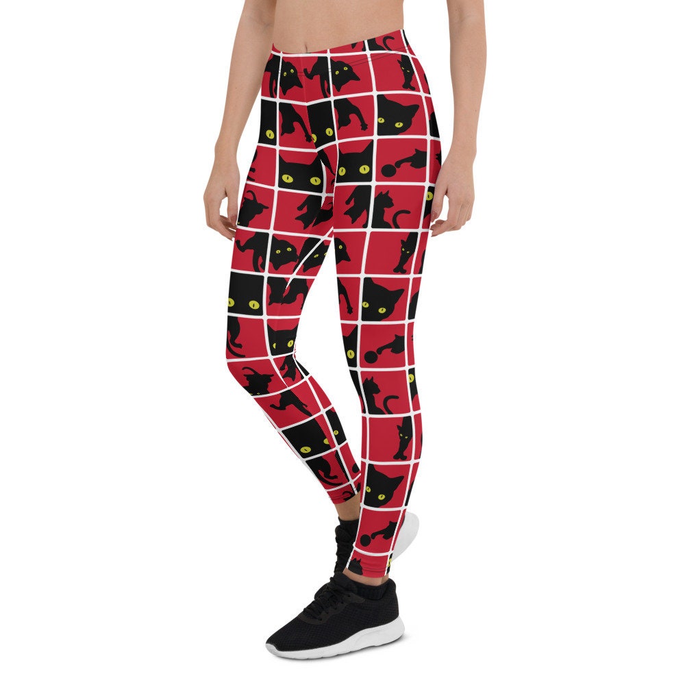 Black Cat Leggings For Women Womens Red Leggings With All Etsy